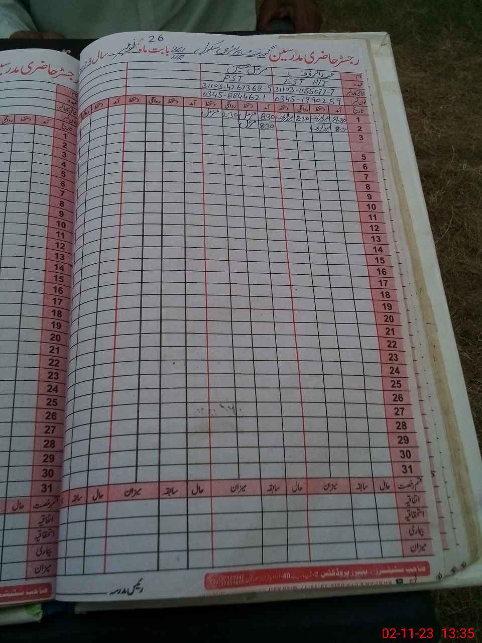 | Name: AB**** RA**** Designation: (School Headmaster's/Headmistress's) PST Phone/Cell Number: 03**** |
