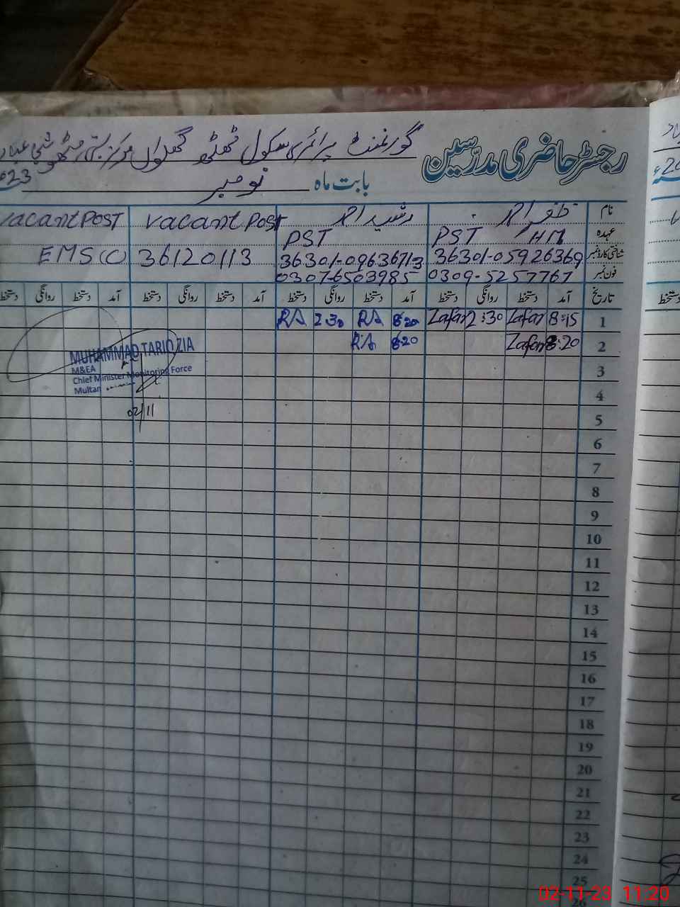 | Name: Ra**** Ah**** Designation: (School Headmaster's/Headmistress's) PST Phone/Cell Number: 03**** |