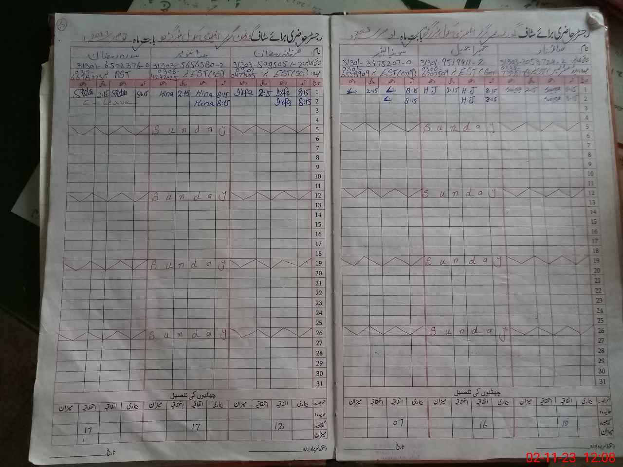 | CNIC | Full Name | Designation | R/C | Absence During Last Calender Month |