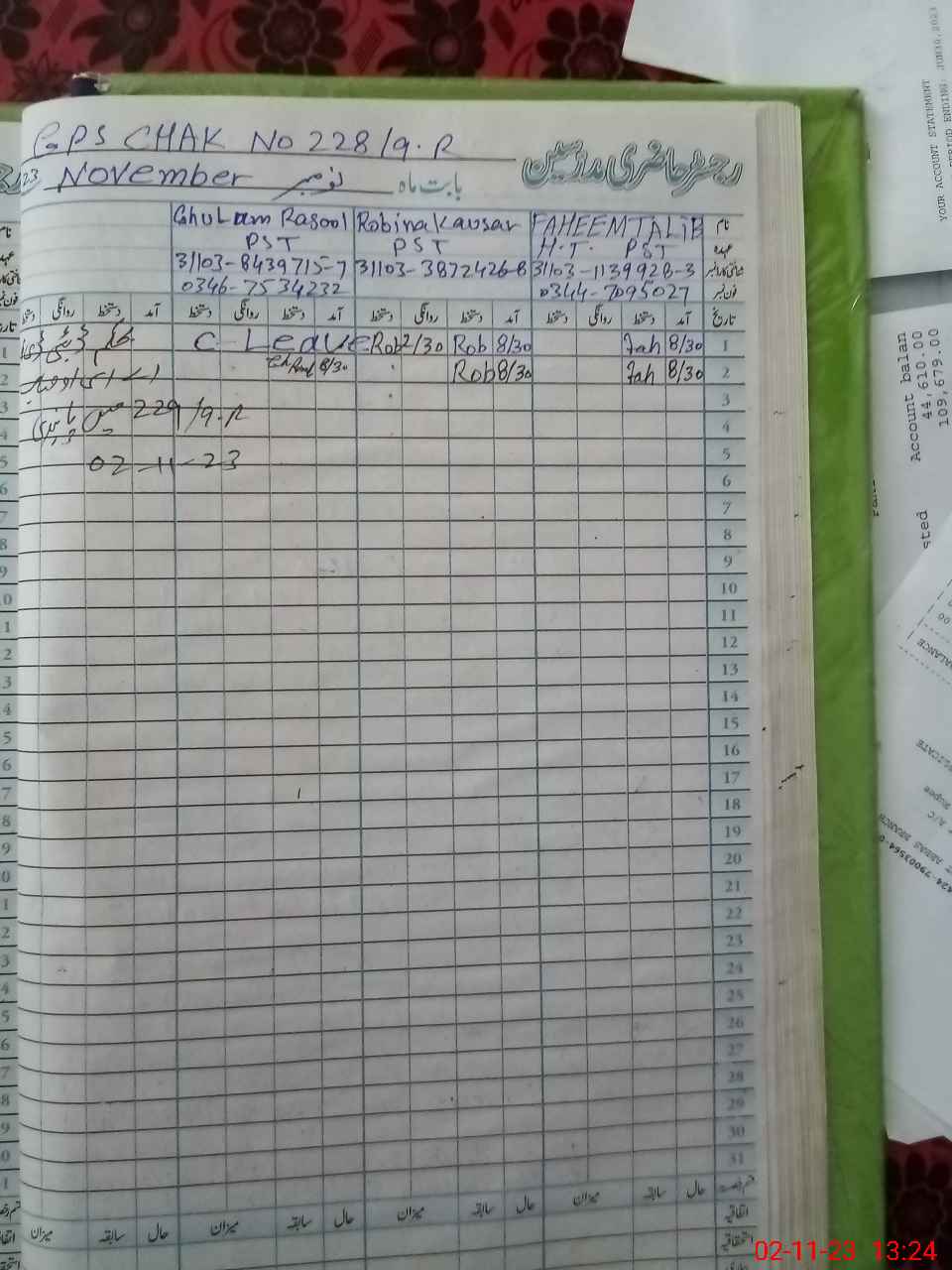 | Name: Fa**** Ta**** Designation: (School Headmaster's/Headmistress's) PST Phone/Cell Number: 03**** |