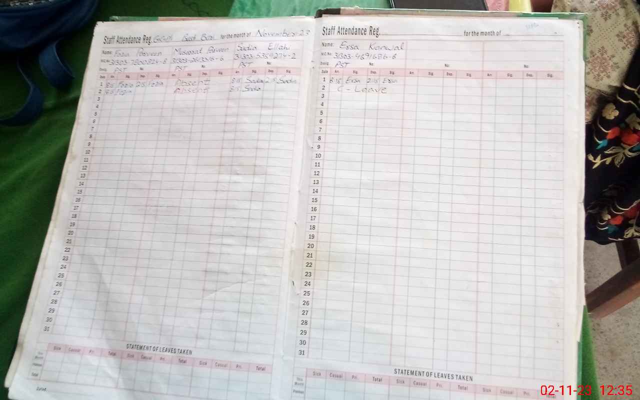 | 31**** | Mu**** Pa**** | 1 | 1 | 0 | 0 | 0 | 0 | 0 | 0 | 0 | 0 | 0 | Absent (Un-Authorized) |