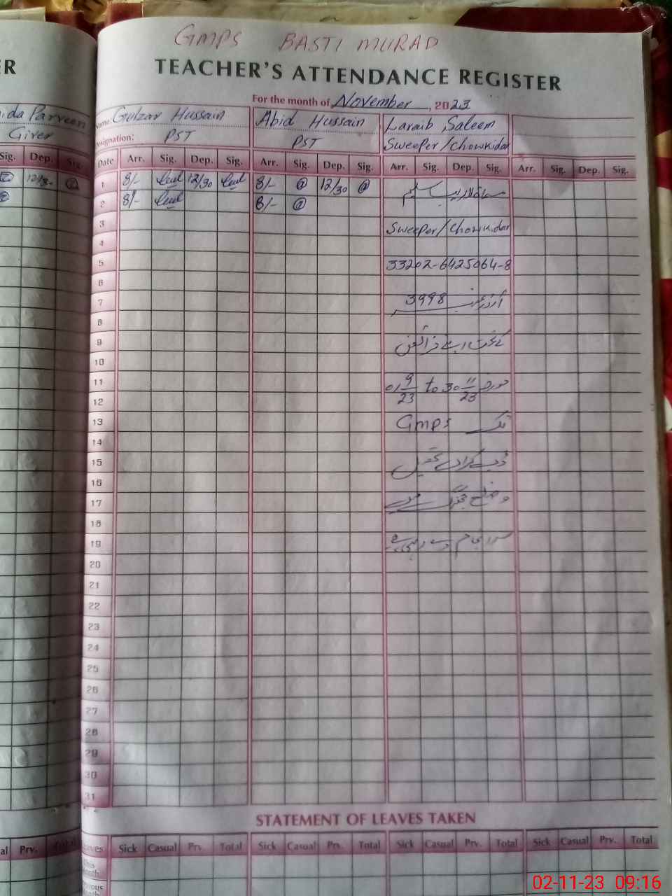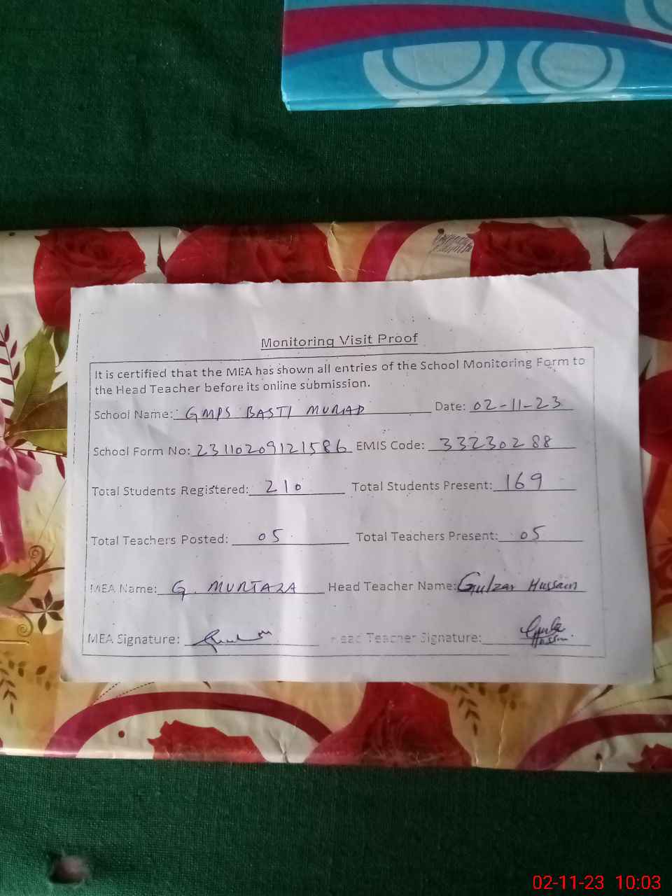 | EMIS Code: 33230288 | Name of School: GMPS BASTI MURAD | |||