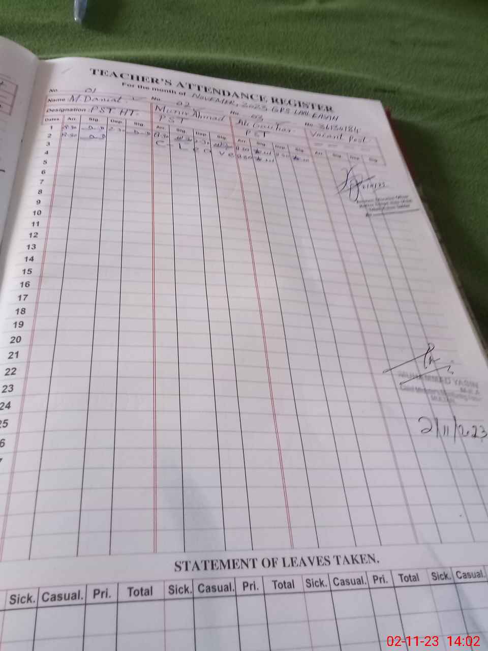 | Name: IR**** AH**** Designation: (School Headmaster's/Headmistress's) PSSP Phone/Cell Number: 03**** |