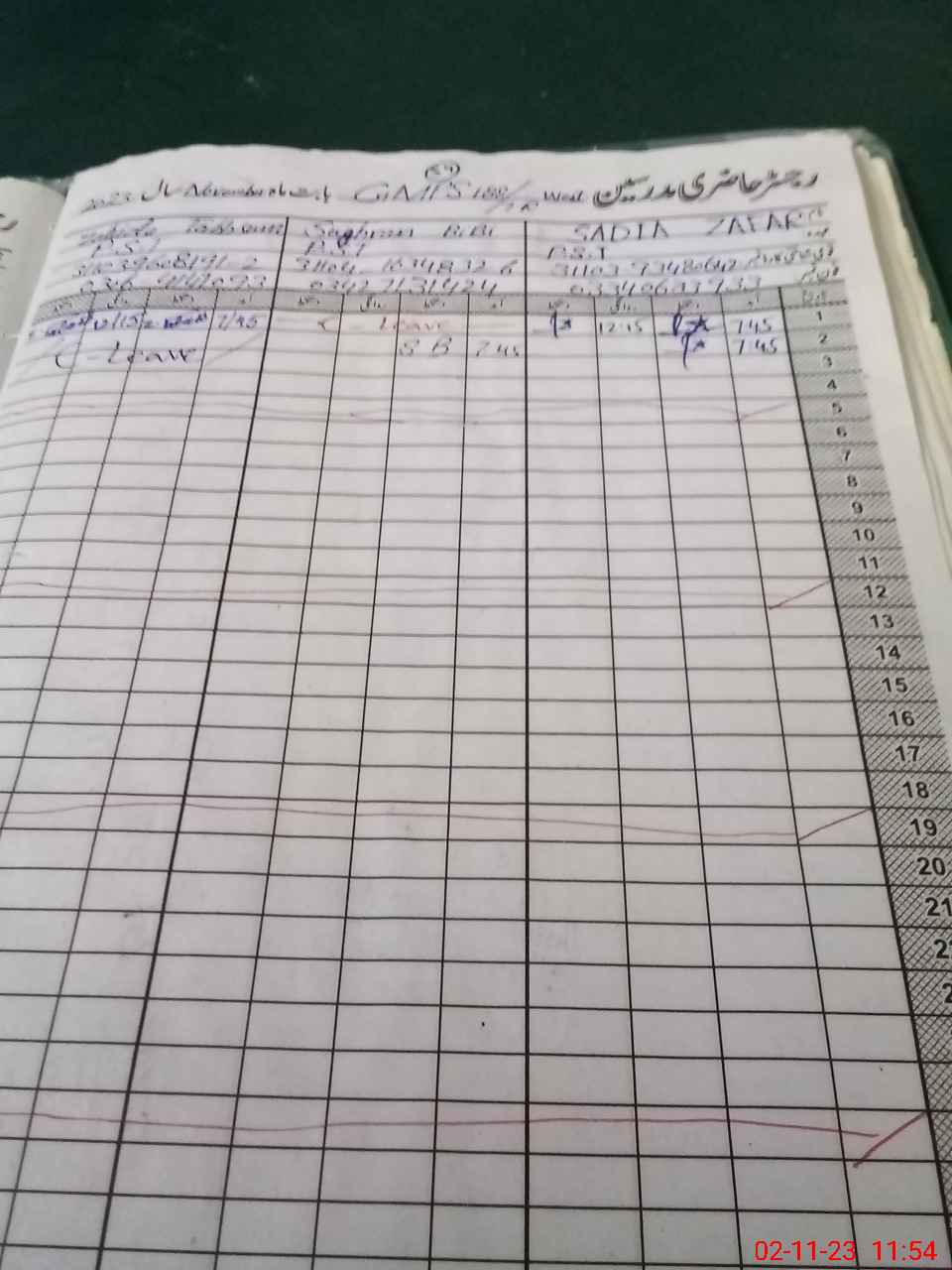 | CNIC | Full Name | Designation | R/C | Absence During Last Calender Month |