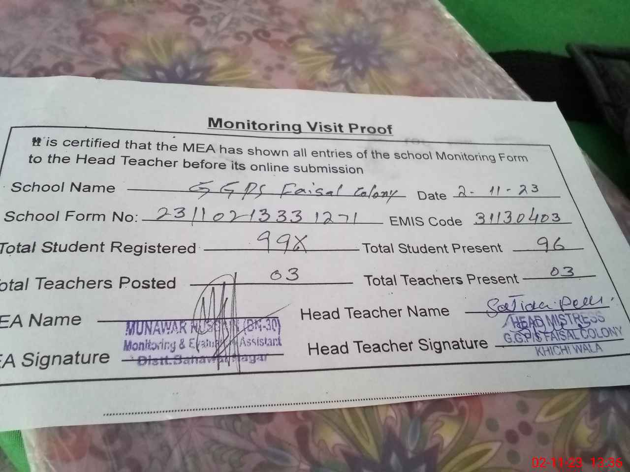 | EMIS Code: 31130403 | Name of School: GGPS FAISAL COLONY | |||