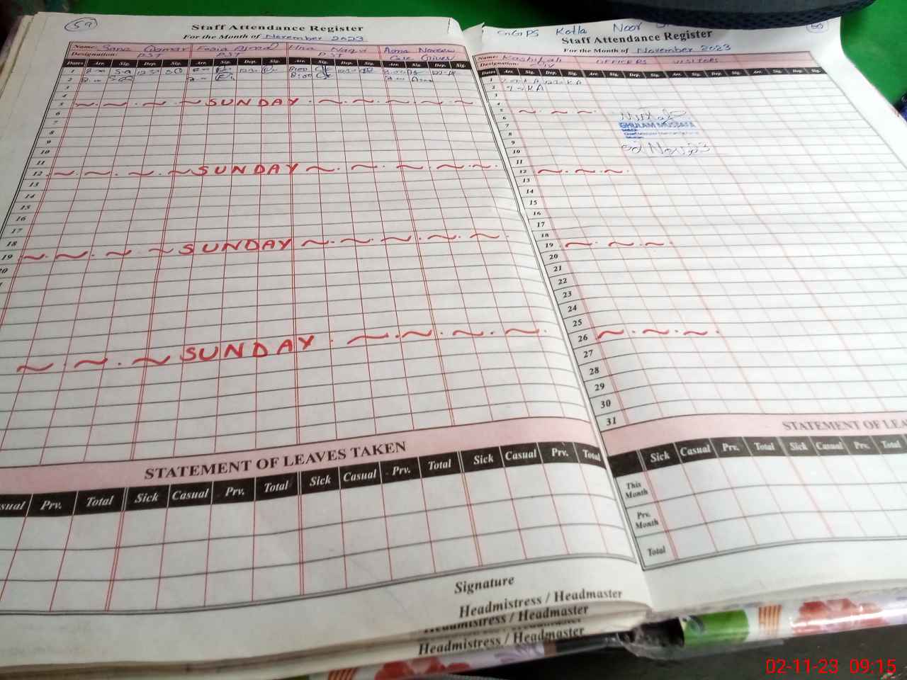 | Attendance Register | Head Teacher | MEA with School | Visit Proof |