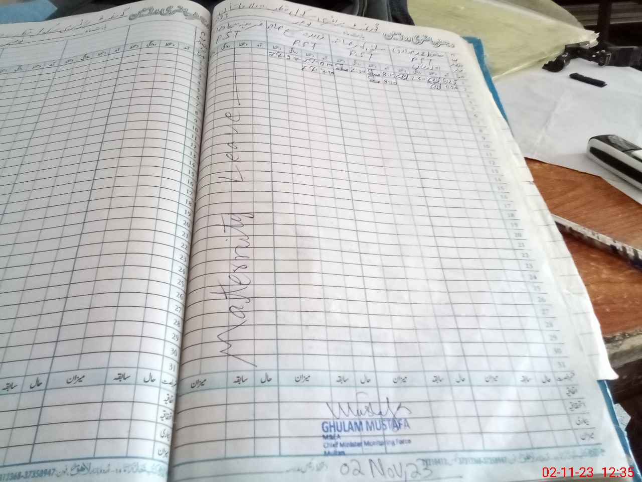 | CNIC | Full Name | Designation | R/C | Absence During Last Calender Month |