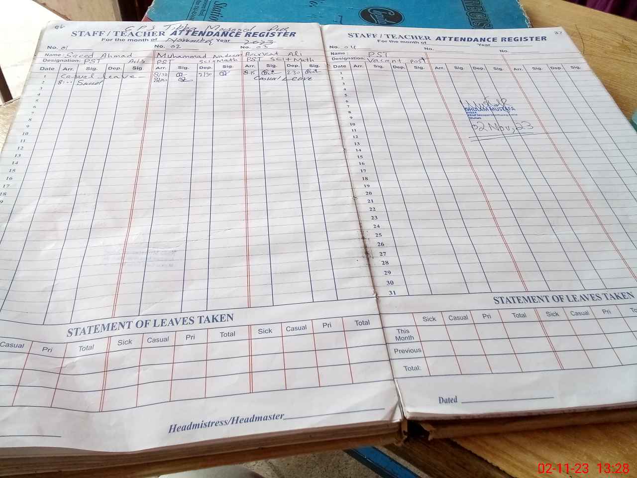 | Attendance Register | Head Teacher | MEA with School | Visit Proof |