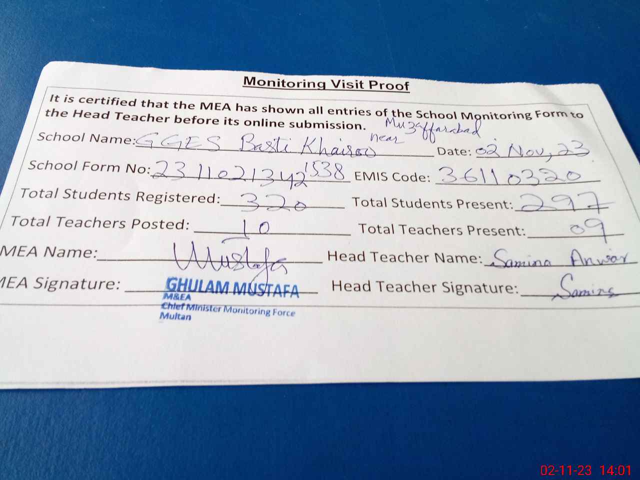 | EMIS Code: 36110320 | Name of School: GGES BASTI KHAIROO NEAR MUZAFFARABAD CANAL MULTAN | |||