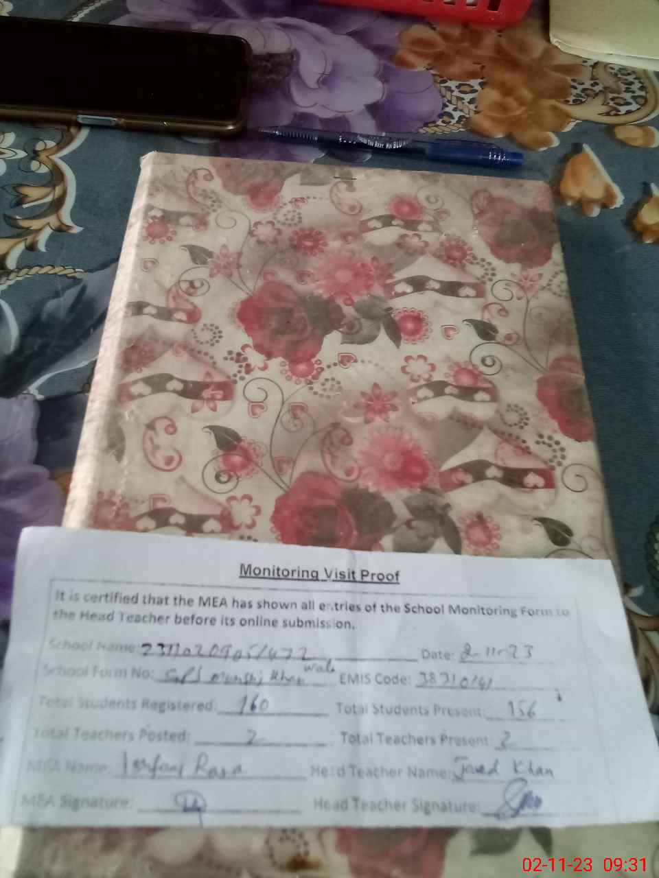 | Attendance Register | Head Teacher | MEA with School | Visit Proof |