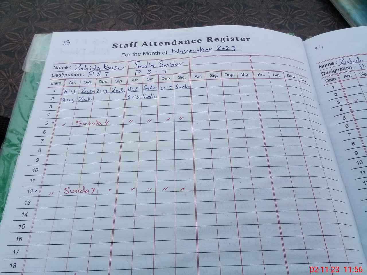 | CNIC | Full Name | Designation | R/C | Absence During Last Calender Month |