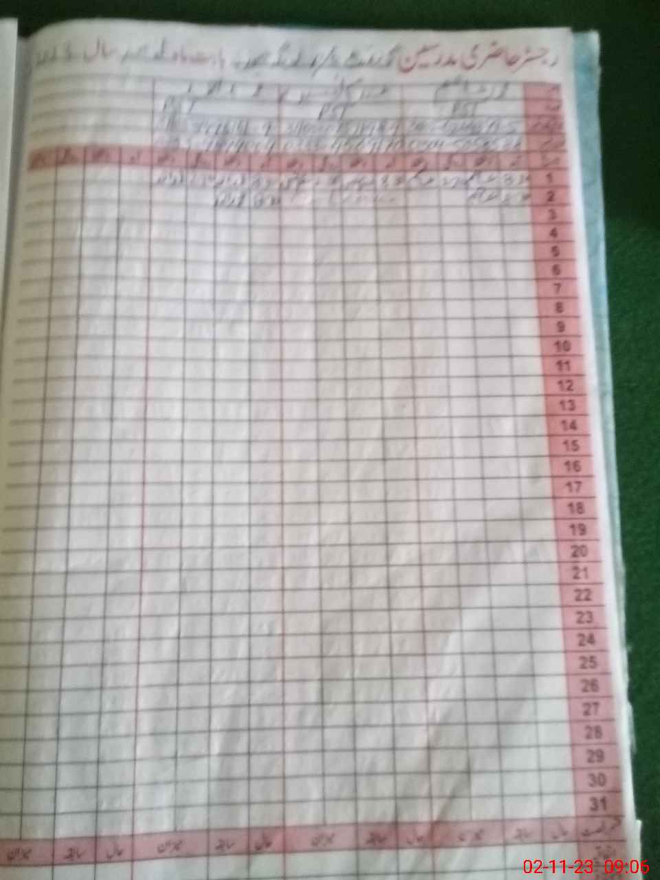 | CNIC | Full Name | Designation | R/C | Absence During Last Calender Month |