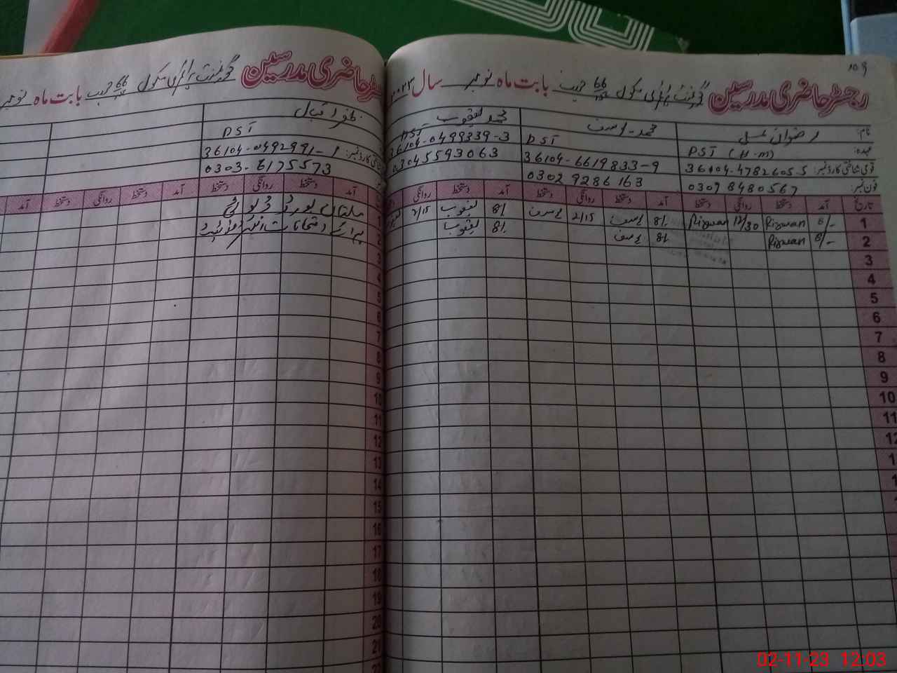 | Name: RI**** AL**** Designation: (School Headmaster's/Headmistress's) PST Phone/Cell Number: 03**** |