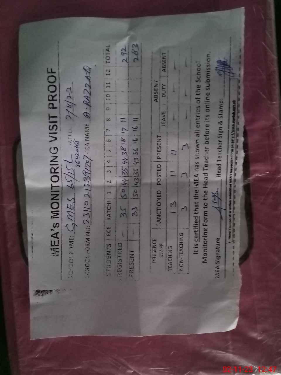 | EMIS Code: 36420655 | Name of School: GMES 65/15-L, KACHA KHUH | |||