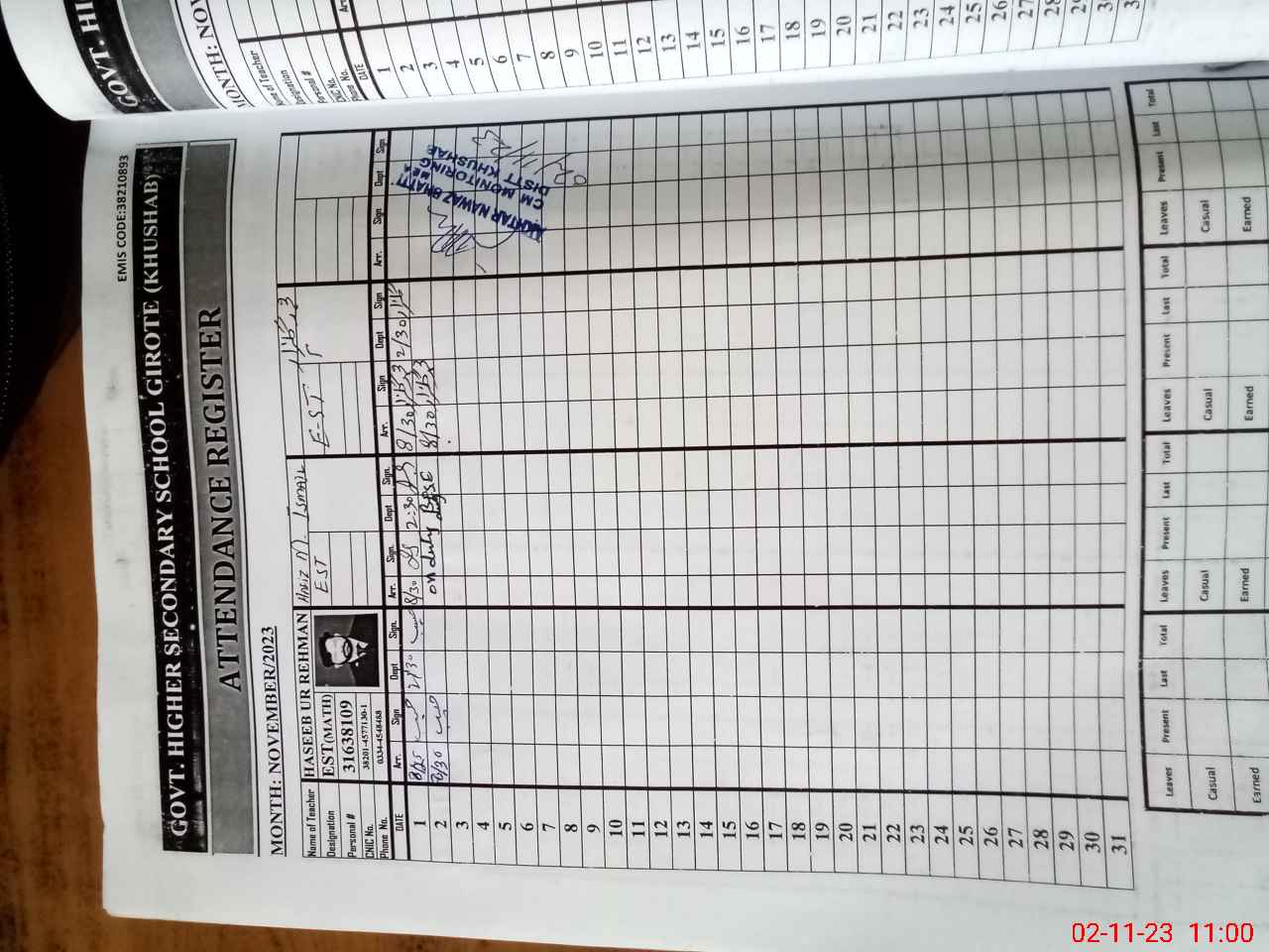 | CNIC | Full Name | Designation | R/C | Absence During Last Calender Month |