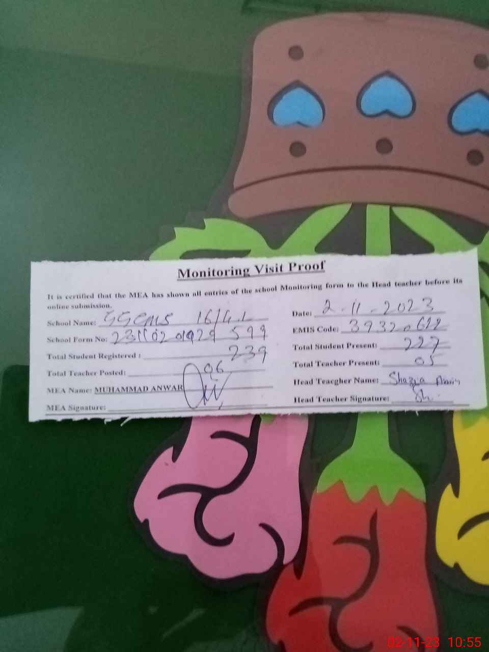 | Attendance Register | Head Teacher | MEA with School | Visit Proof |