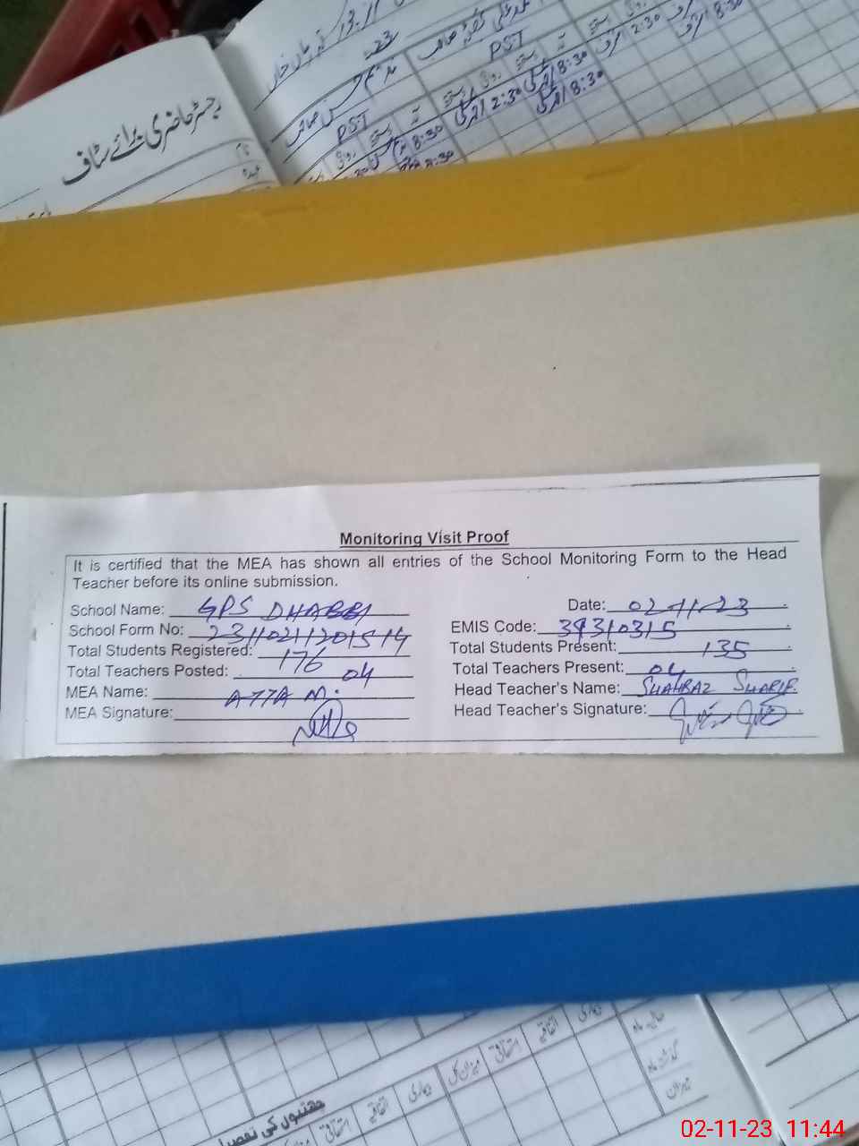 | EMIS Code: 39310315 | Name of School: GPS DHABBI | |||