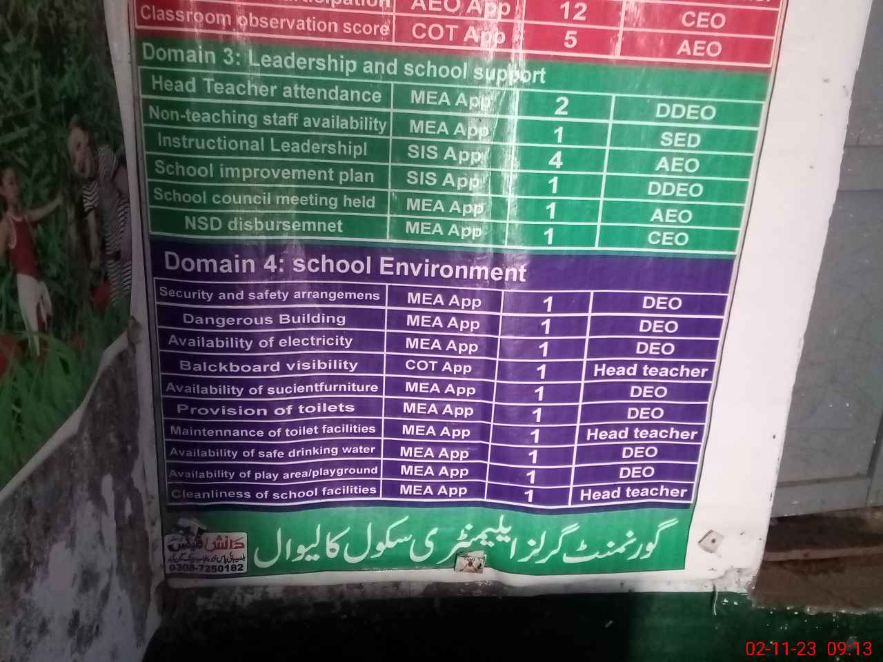 | Certified that this School was Inspected by the Undersigned MEA/DMO Today and the Information Stated Above is as Per Record. | |||||