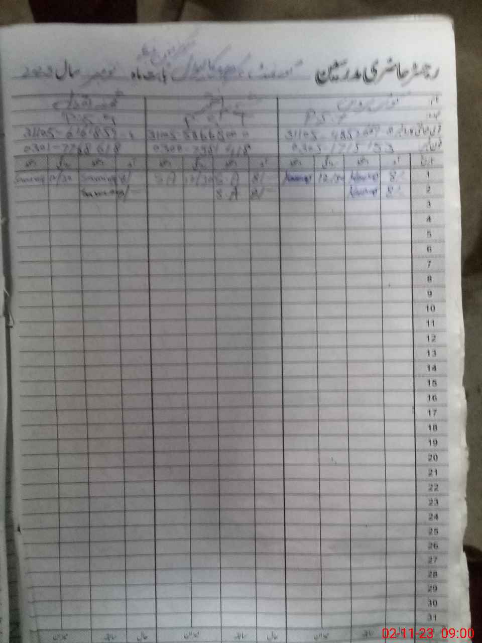 | CNIC | Full Name | Designation | R/C | Absence During Last Calender Month |