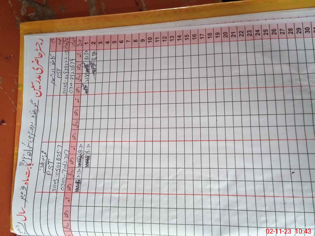 | CNIC | Full Name | Designation | R/C | Absence During Last Calender Month |