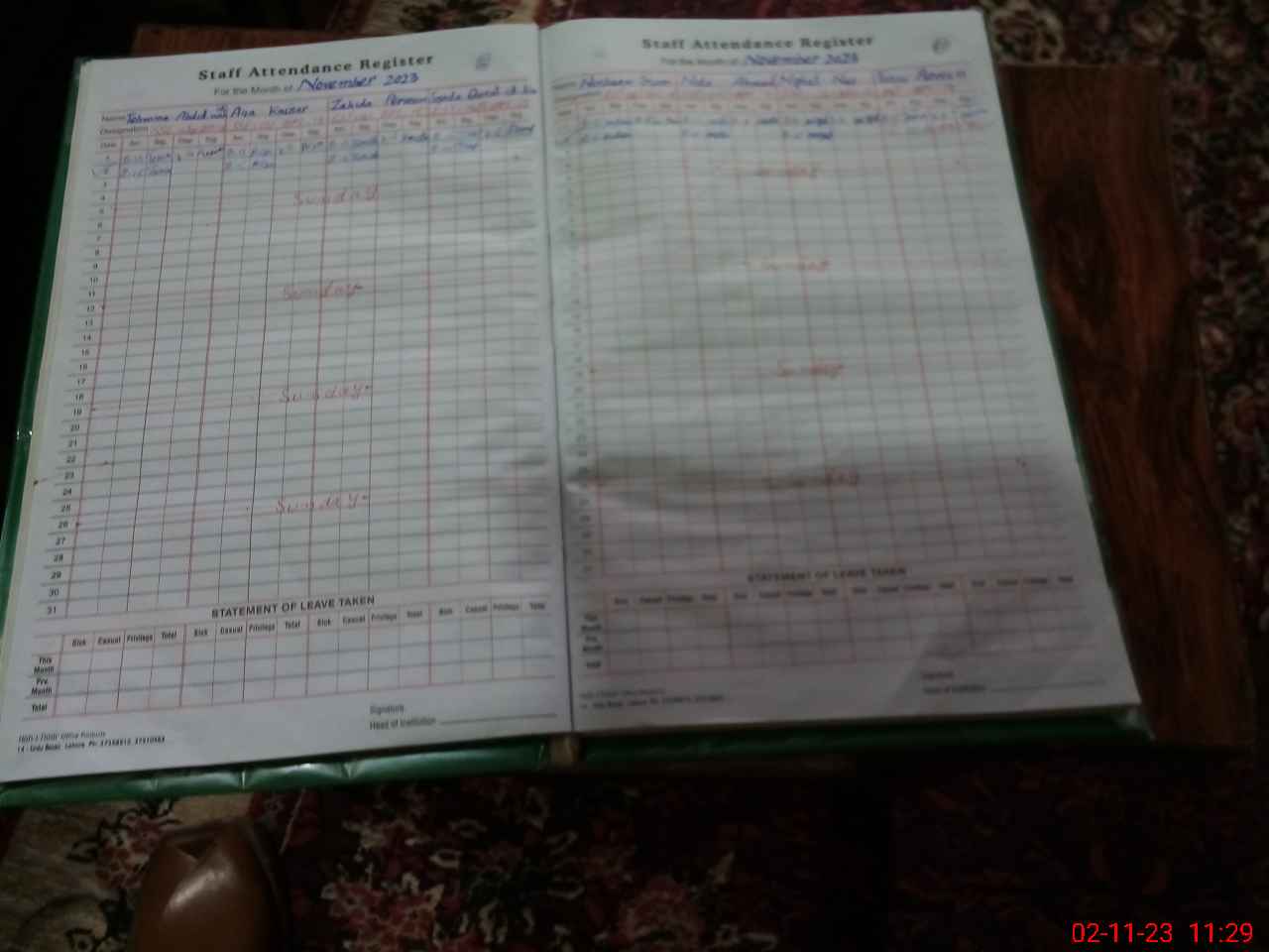 | CNIC | Full Name | Designation | R/C | Absence During Last Calender Month |