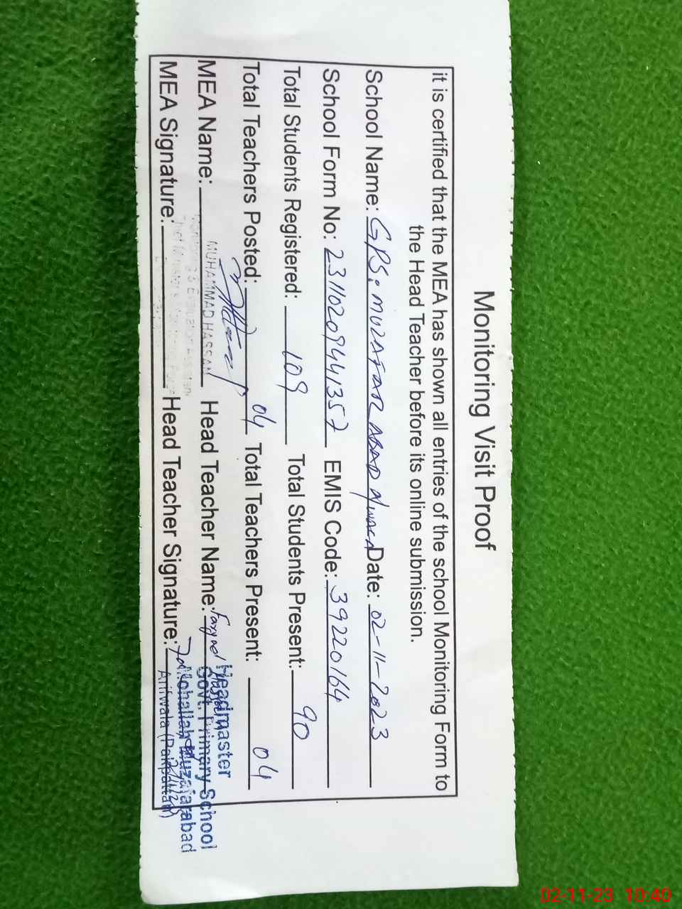 | EMIS Code: 39220164 | Name of School: GPS MOHALA MUZAFFAR ABAD | |||