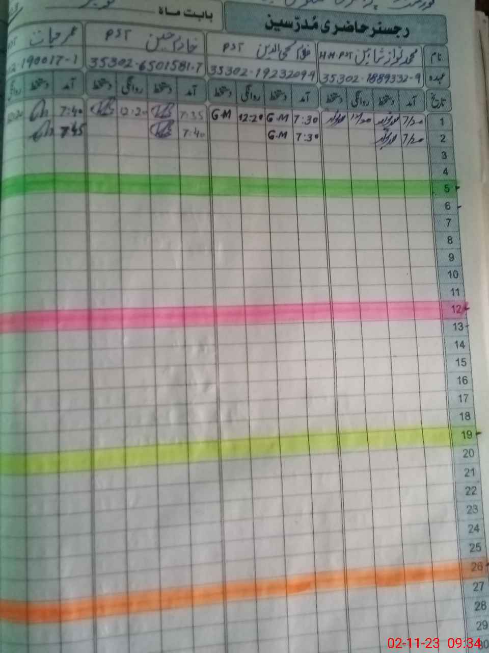 | CNIC | Full Name | Designation | R/C | Absence During Last Calender Month |