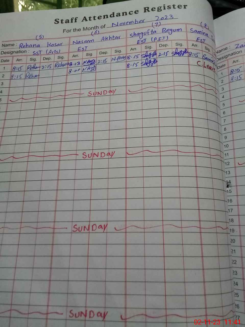 | CNIC | Full Name | Designation | R/C | Absence During Last Calender Month |