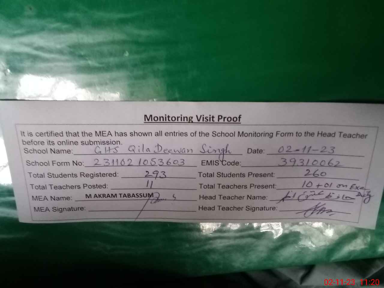| EMIS Code: 39310062 | Name of School: GHS QILA DEWAN SINGH | |||