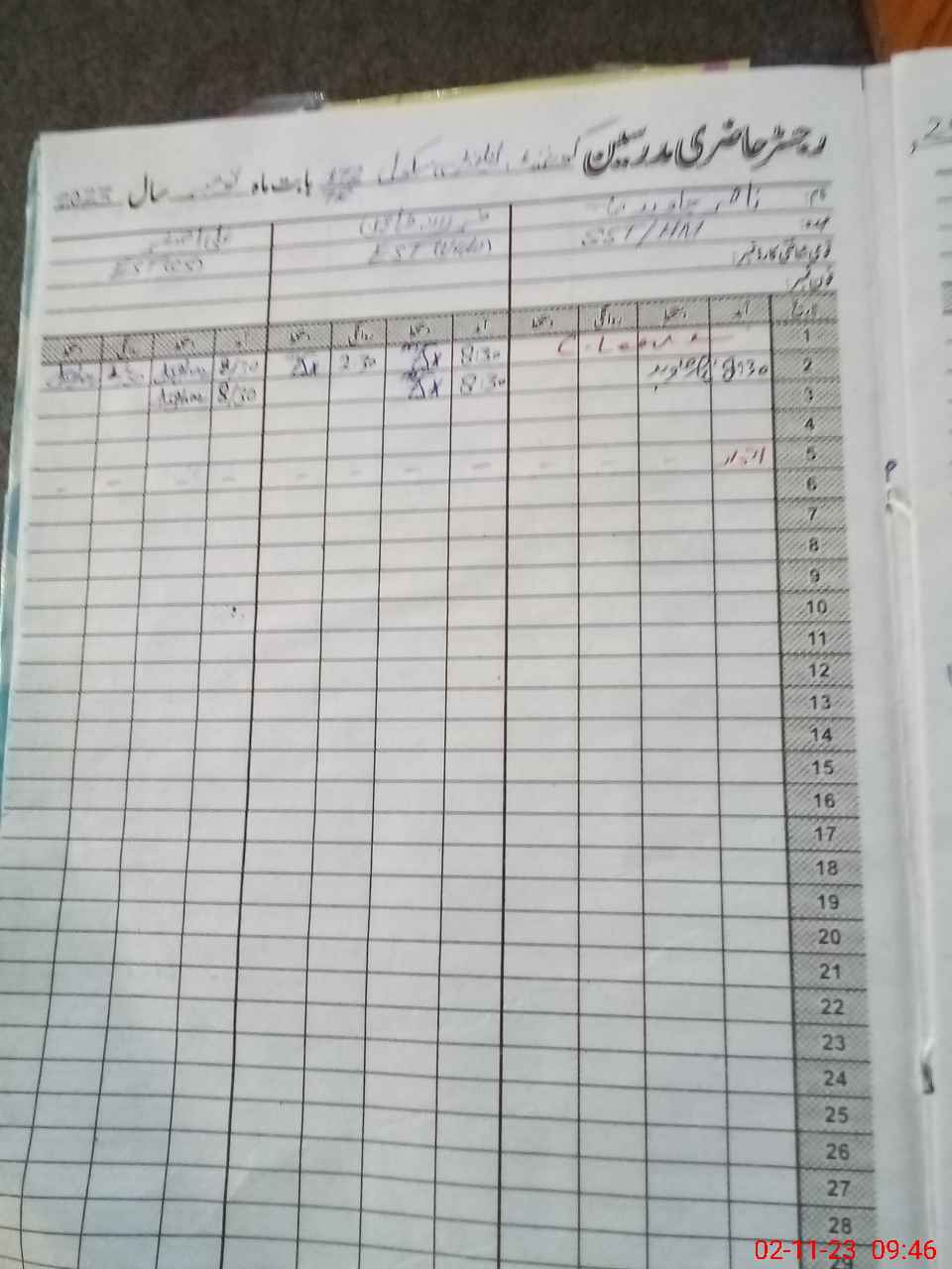 | CNIC | Full Name | Designation | R/C | Absence During Last Calender Month |