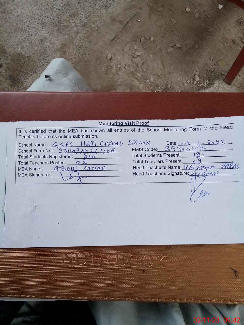 | EMIS Code: 39310494 | Name of School: GGPS HAJI CHAND STATION | |||