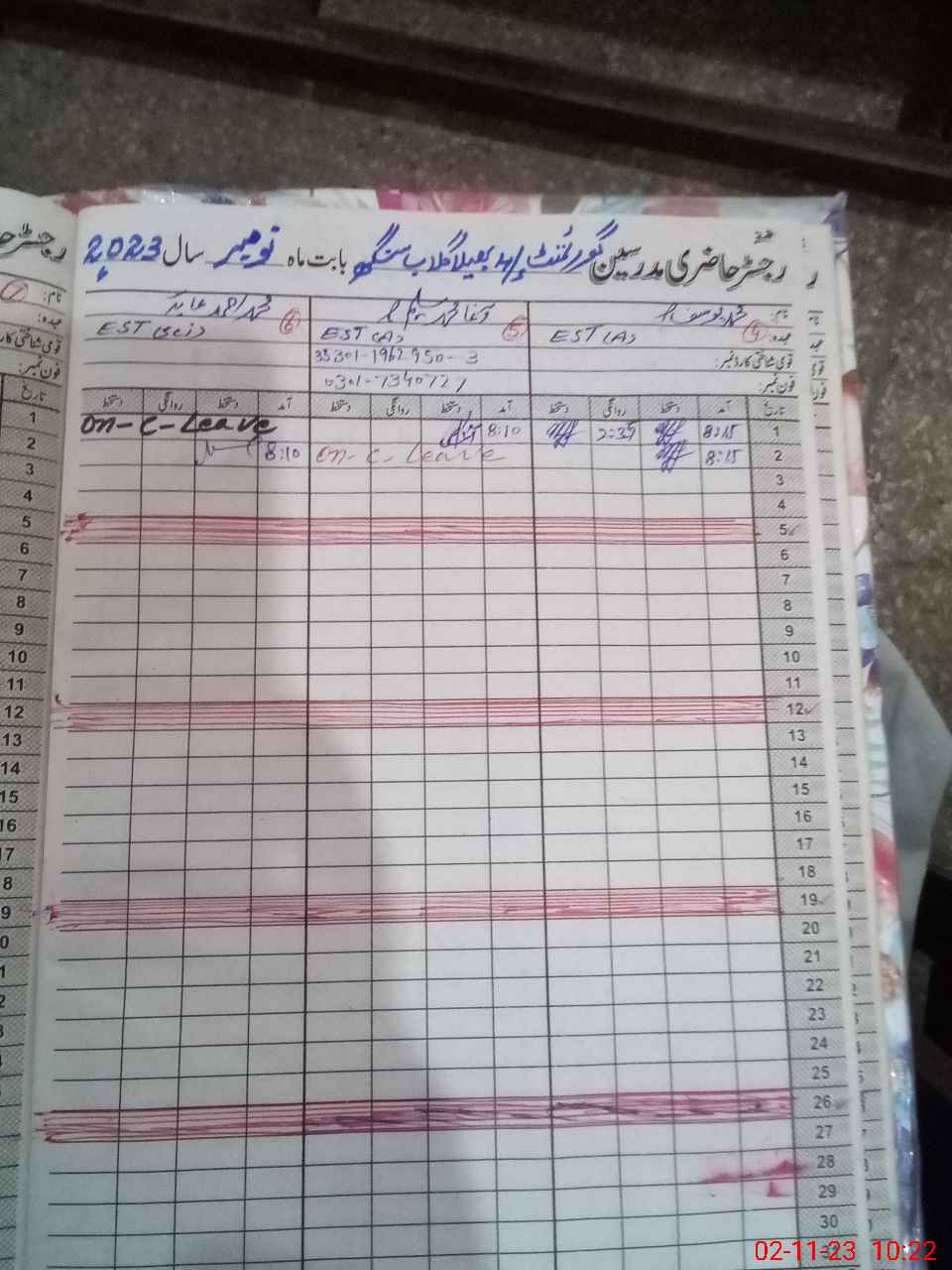 | CNIC | Full Name | Designation | R/C | Absence During Last Calender Month |