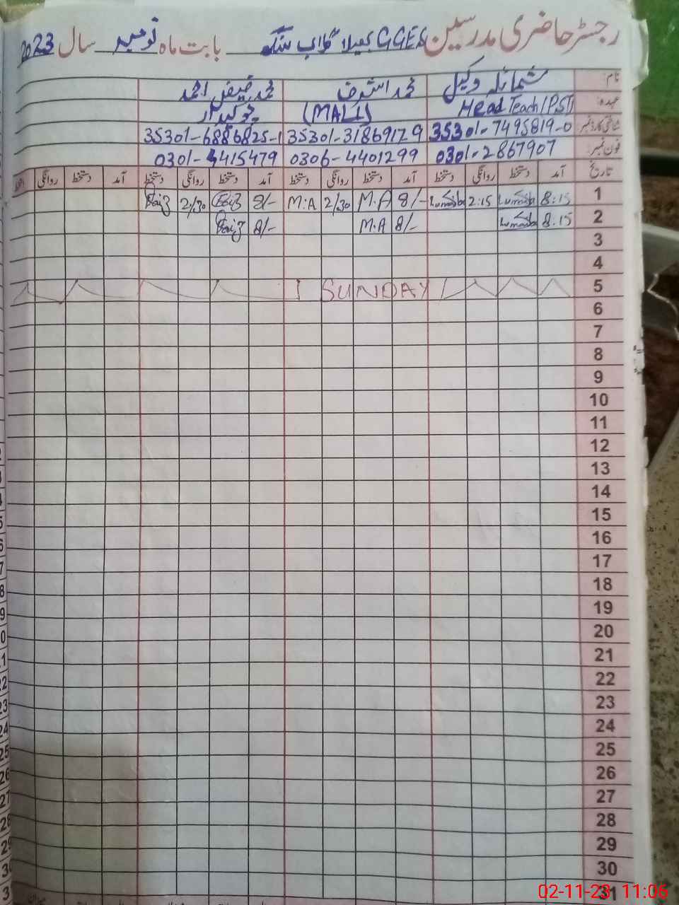 | Name: SH**** WA**** Designation: (School Headmaster's/Headmistress's) PST Phone/Cell Number: 03**** |