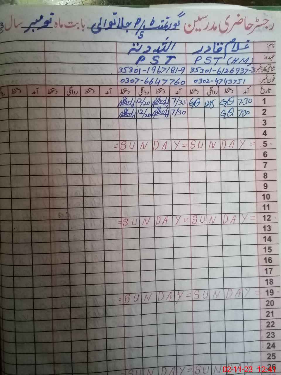 | Name: Gh**** Qa**** Designation: (School Headmaster's/Headmistress's) PST Phone/Cell Number: 03**** |