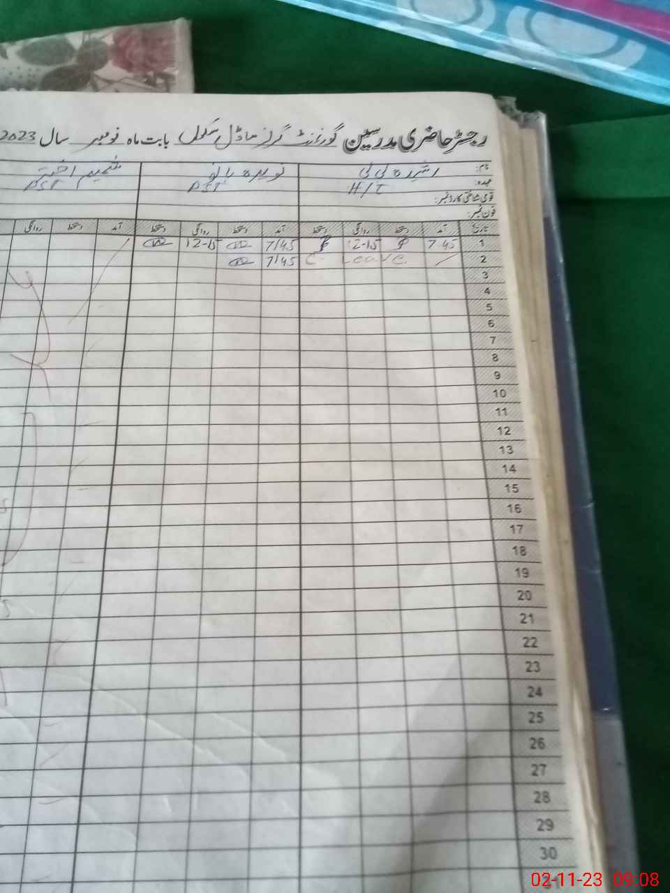 | CNIC | Full Name | Designation | R/C | Absence During Last Calender Month |
