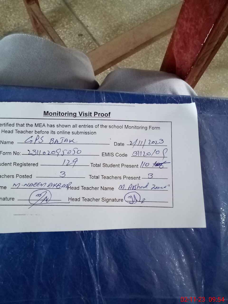 | EMIS Code: 31110109 | Name of School: GPS BAJAK | |||