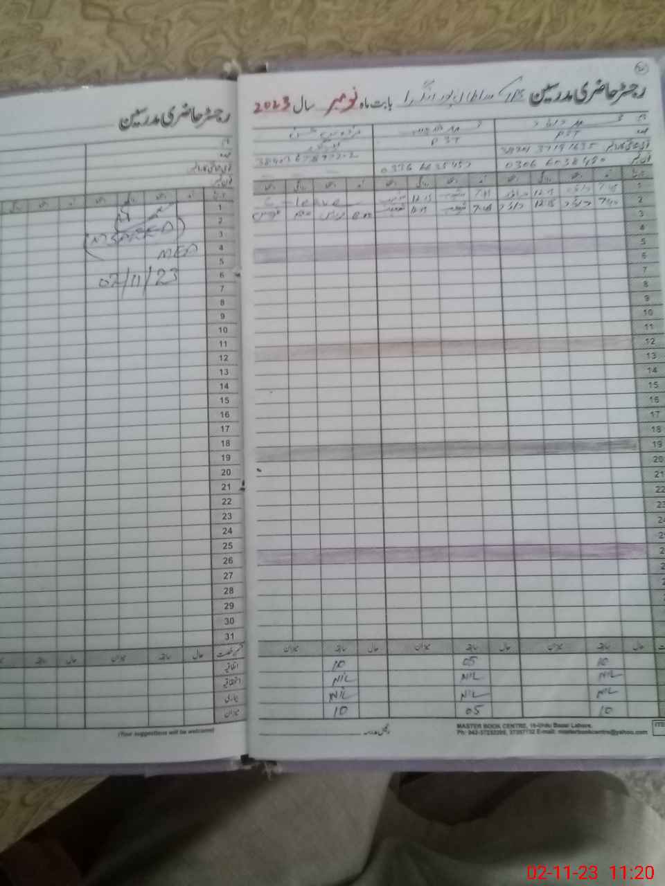 | CNIC | Full Name | Designation | R/C | Absence During Last Calender Month |