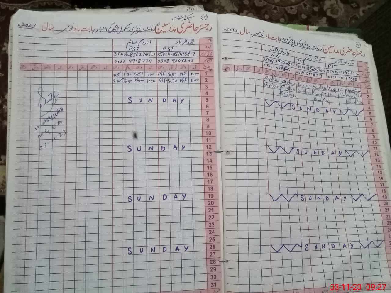 | Name: AK**** RA**** Designation: (School Headmaster's/Headmistress's) PST Phone/Cell Number: 03**** |