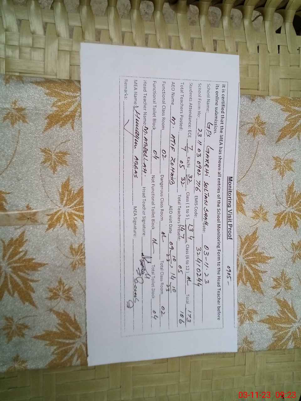 | EMIS Code: 32410244 | Name of School: GPS GARHI SULTAN SHAH | |||