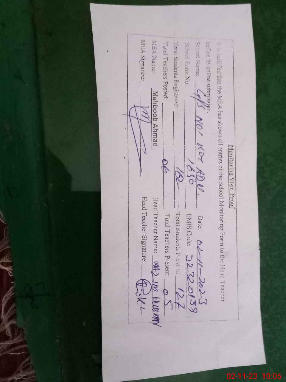 | EMIS Code: 32320139 | Name of School: GPS KOT ADU NO. 1 | |||