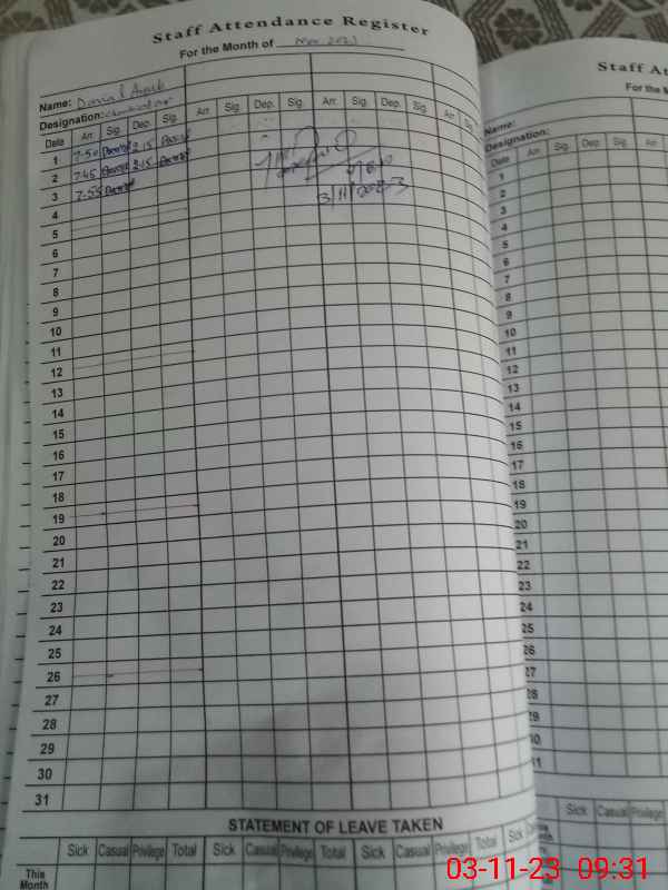 | 37**** | Fa**** Ha**** | 1 | 0 | 0 | 31 | 0 | 0 | 0 | 0 | 0 | 0 | Absent (Un-Authorized) | |