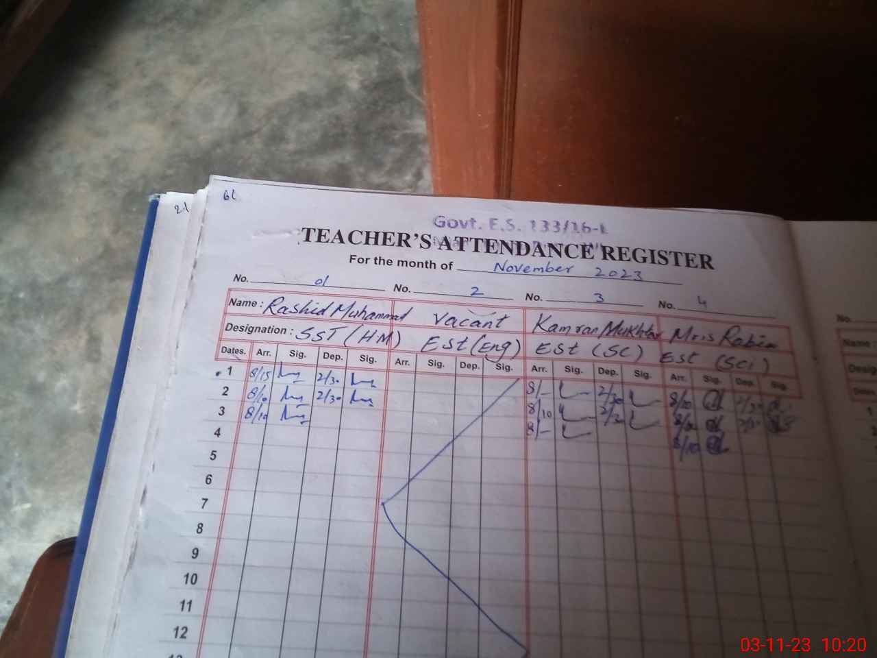| Name: AB**** ME**** Designation: (School Headmaster's/Headmistress's) EST CS Phone/Cell Number: 03**** |