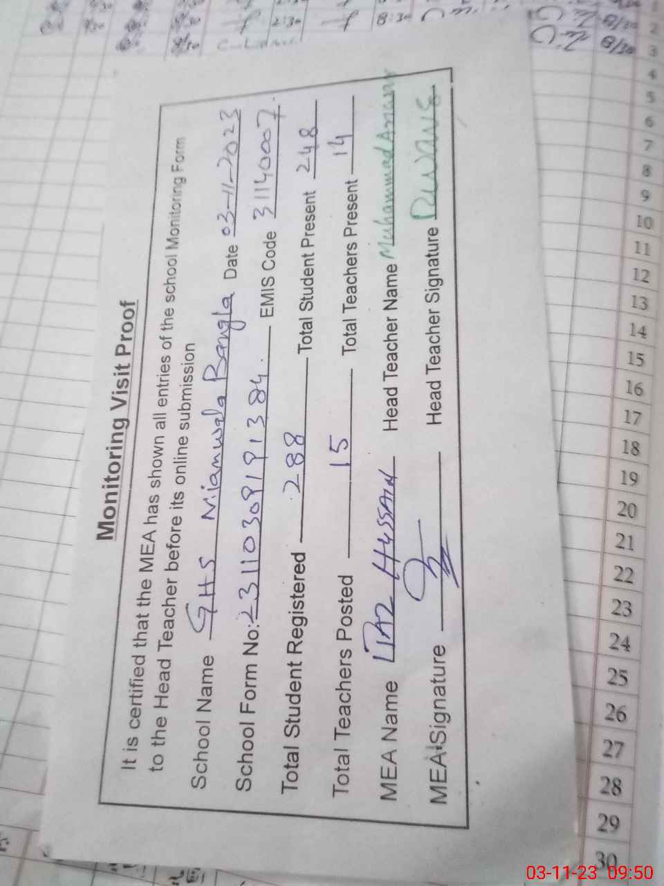 | EMIS Code: 31140007 | Name of School: GHS MIAN WALA BANGLA | |||