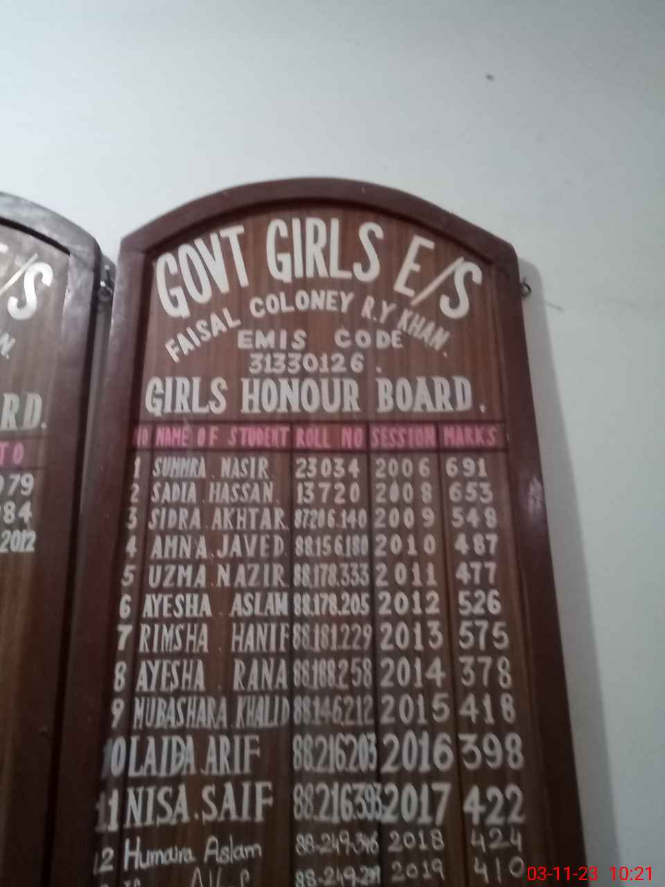 | EMIS Code: 31330126 | Name of School: GGES FAISAL COLONY | |||
