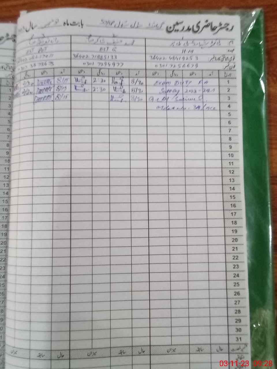 | CNIC | Full Name | Designation | R/C | Absence During Last Calender Month |