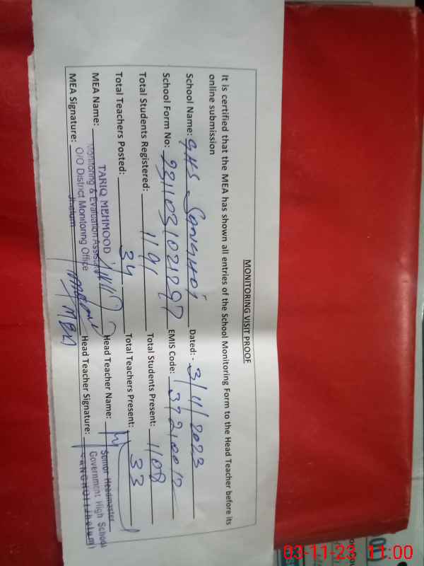 | Certified that this School was Inspected by the Undersigned MEA/DMO Today and the Information Stated Above is as Per Record. | |||||