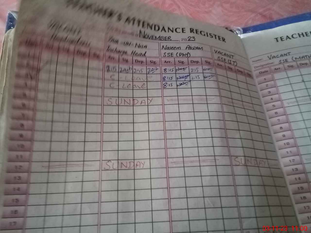 | CNIC | Full Name | Designation | R/C | Absence During Last Calender Month |