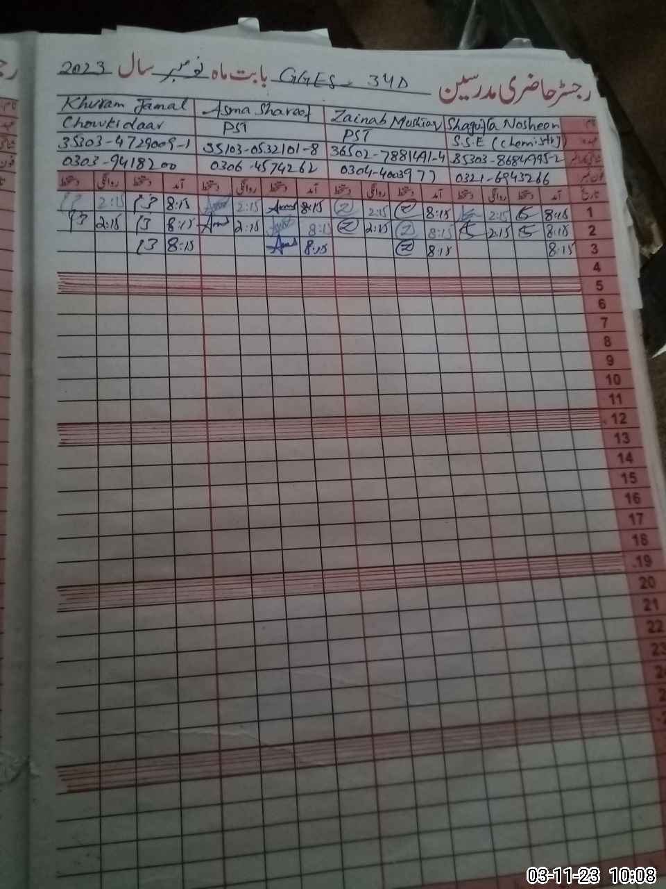 | CNIC | Full Name | Designation | R/C | Absence During Last Calender Month |