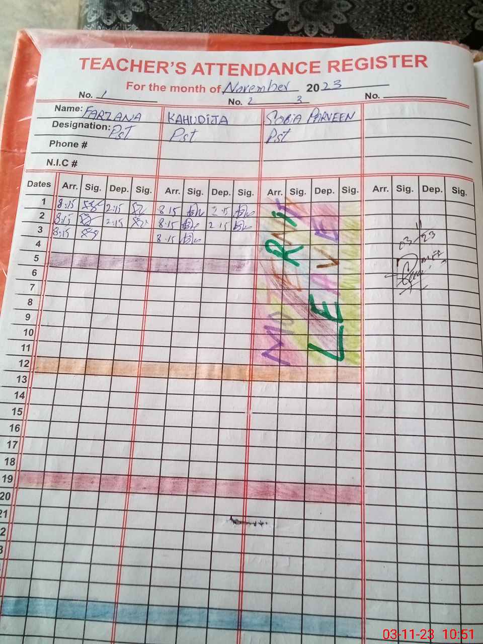 | Name: NA**** AR**** Designation: (School Headmaster's/Headmistress's) PST Phone/Cell Number: 03**** |