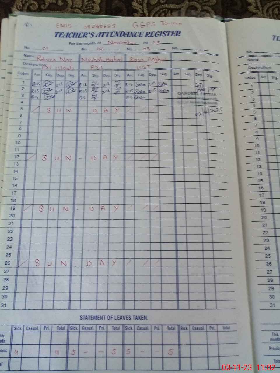| Leave | Duty | Absent | Maternity | Medical | Ex- Pak |